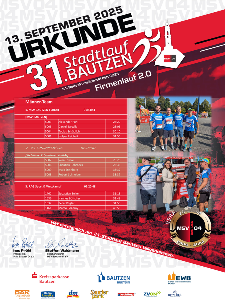 Auch in 2025 fanden sich die Laufbegeisterten des Betonwerks zu einem Team zusammen und starteten beim Bautzner Stadtlauf im Rahmen des Firmenlaufs 2.0 am 13.09.2025.